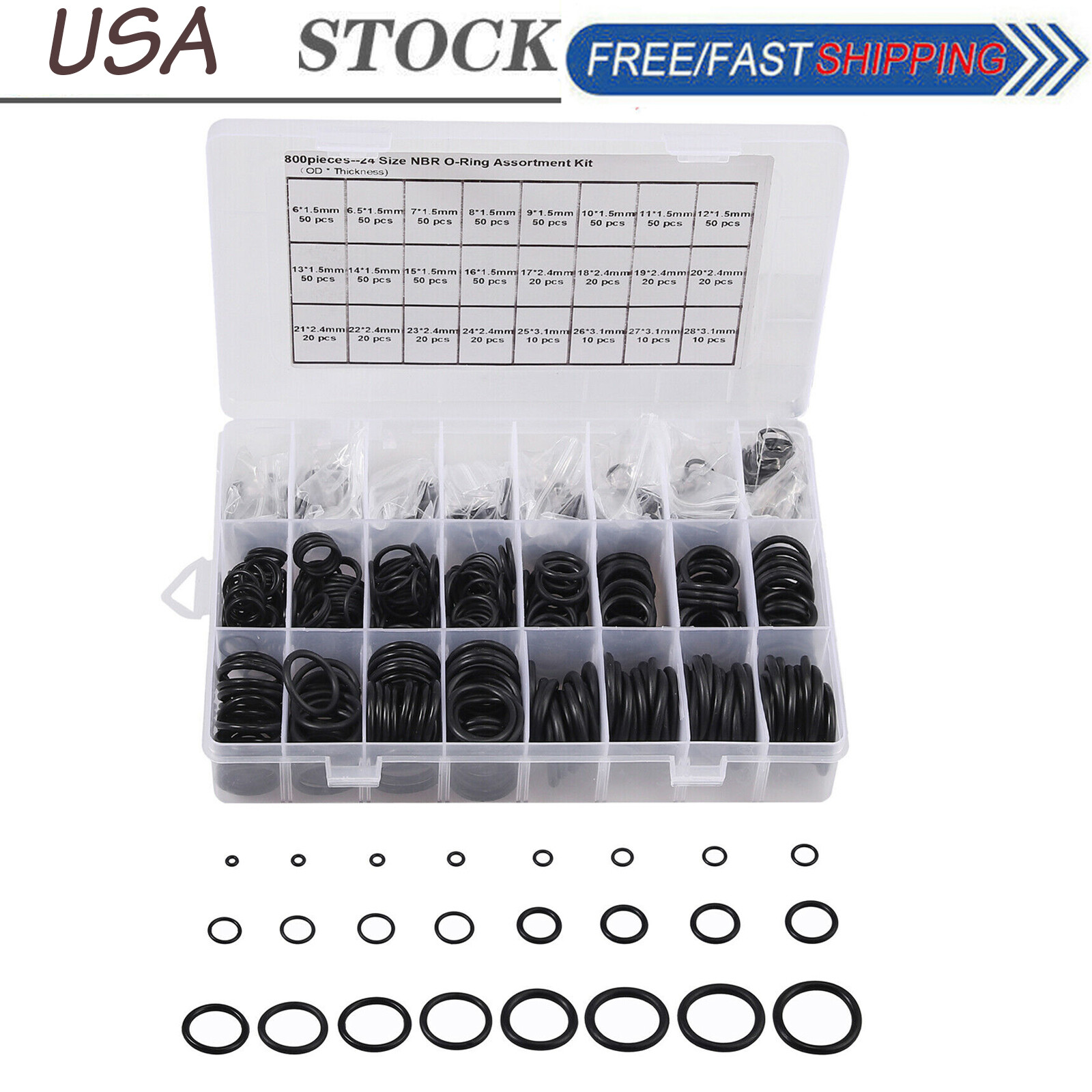 Automotive 24 Size 800 pcs Nitrile Rubber NBR O-Ring Gasket ...